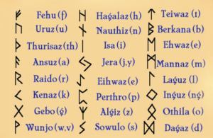 l sistema runico più antico è chiamato Futhark: esso divide le 24 rune in 3 gruppi (Aettir) formati ognuno da una serie di 8 rune e prende il nome dalle iniziali delle prime 6 rune del primo gruppo, chiamato il gruppo di Fehu.